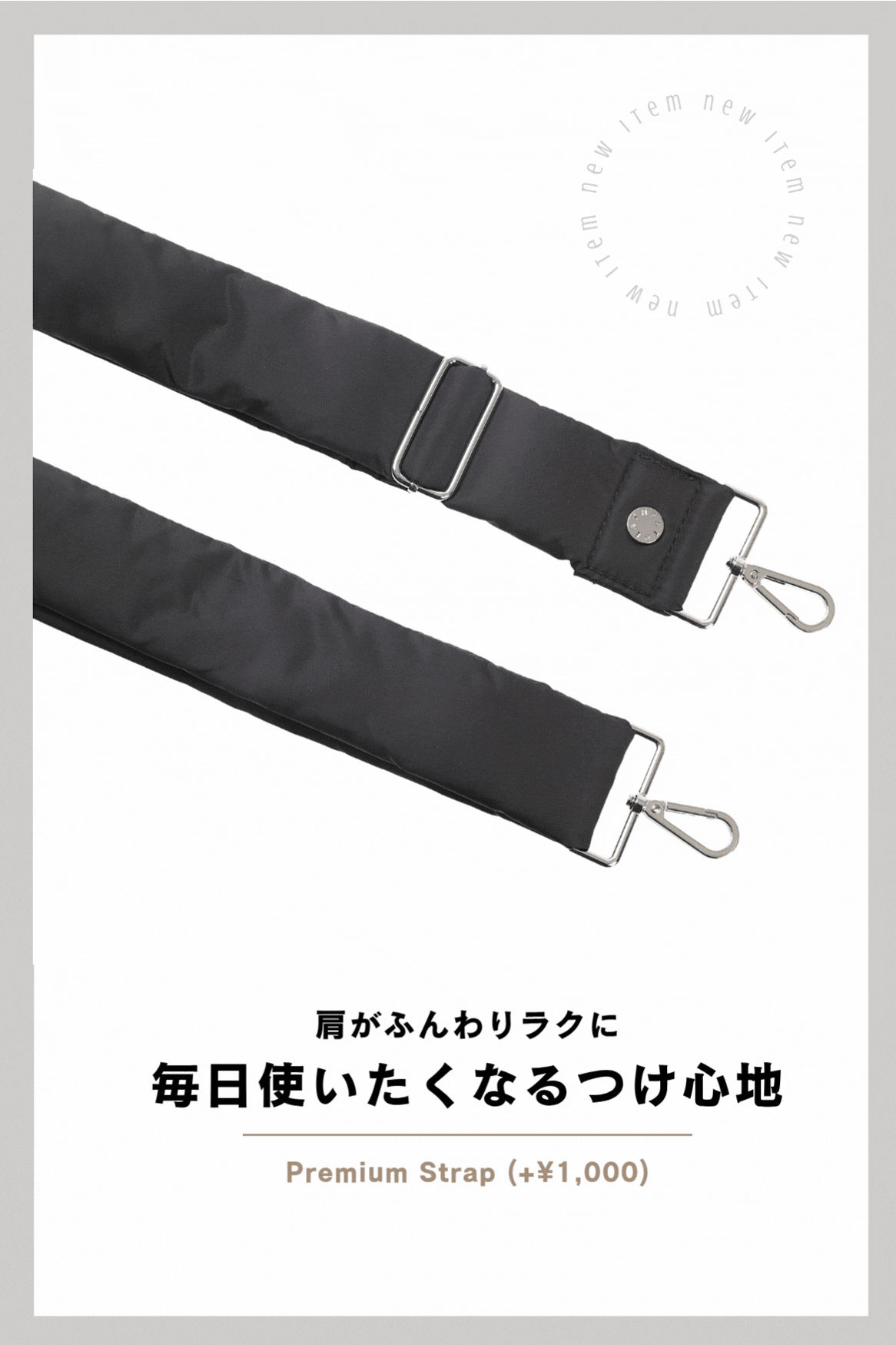 ショルダー/クロスボディストラップをハンドルに掛けるだけ。両サイドのDカンも活用でき、肩掛け⇄装着の切り替えがスムーズで両手がしっかり空きます。
